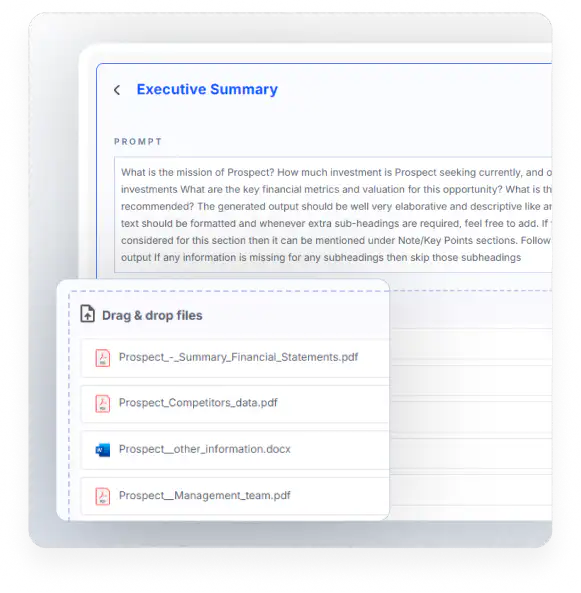 Move from screening to building a full memo ready for your investment committee. Ingest an entire virtual data room (VDR) and use agentic models to analyze financials, identify risks, and validate results.