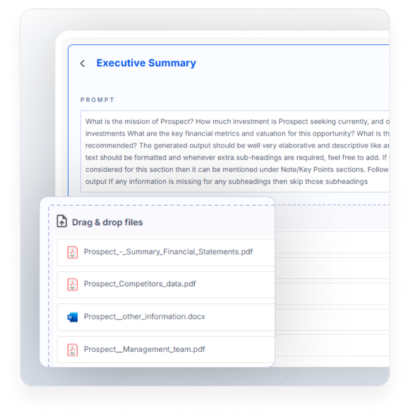 Move from screening to building a full memo ready for your investment committee. Ingest an entire virtual data room (VDR) and use agentic models to analyze financials, identify risks, and validate results.