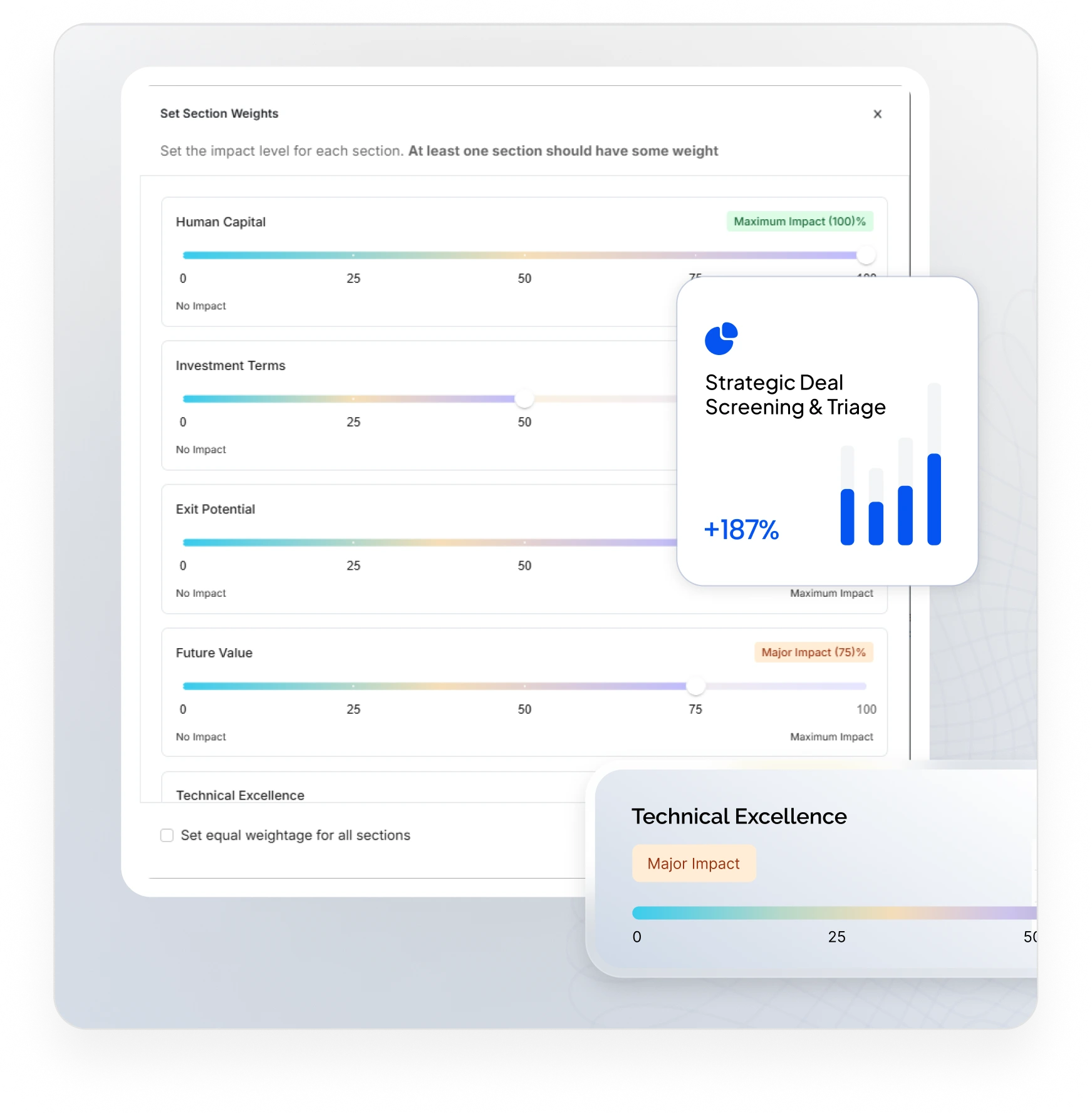 Instantly transform a pitch deck or company website into a diligence memo. Use domain-specific AI to automatically score and rank inbound opportunities against your mandate so your team focuses on high-potential deals.